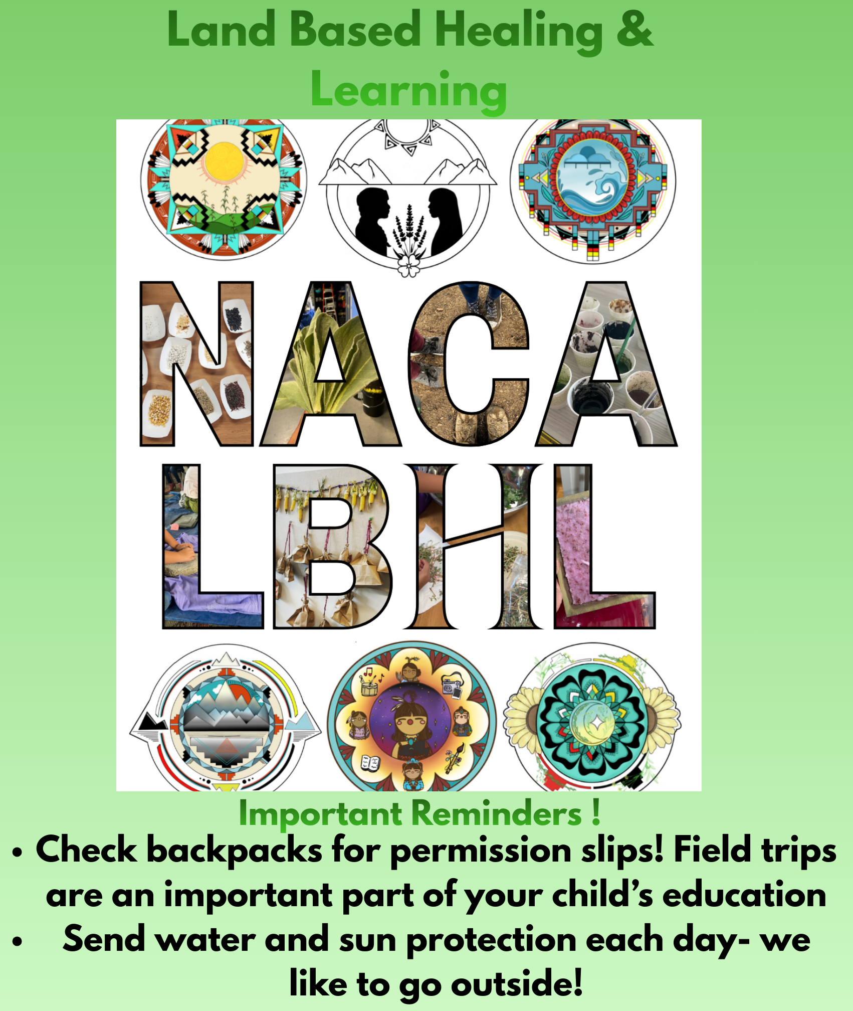 - Create a series of land based learning tracks, rooted in indigenous epistemologies, designed to supplement student’s learning development as they move on to college and/ or careers